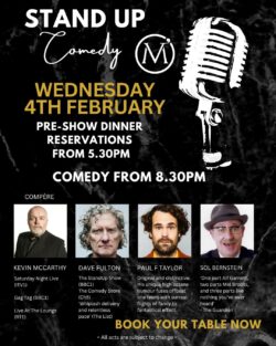 Following the success of our Comedy Nights this year, we have confirmed another two for 2026: Wednesday 4th February & Wednesday 18th March. Tables open for booking now!